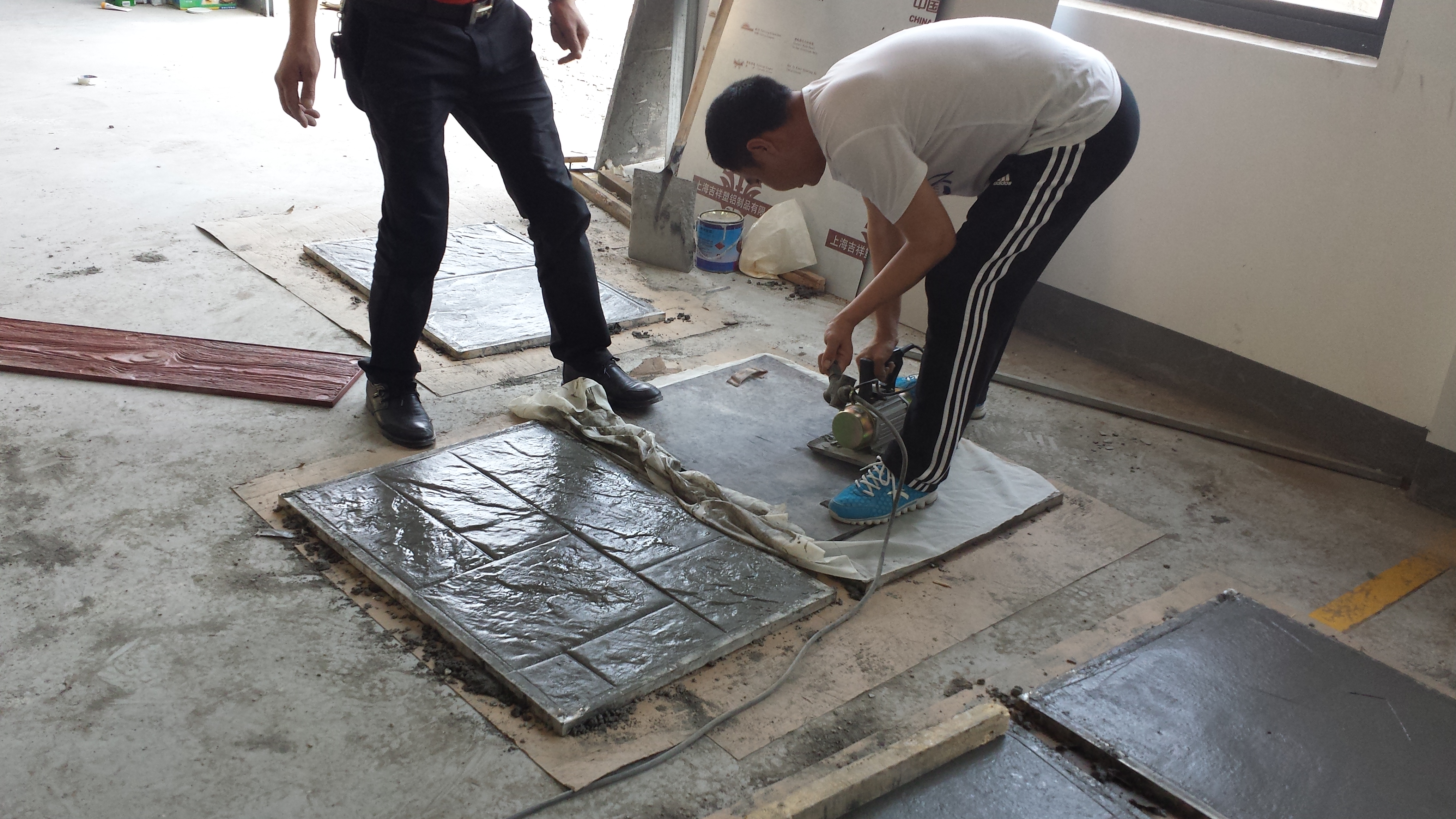 2.在模具上刷上機油。雖然刷上機油也可以防止模具粘連,后期清理模具會非常麻煩,同時混凝土壓模地面也會被油污污染導致成品不美觀。