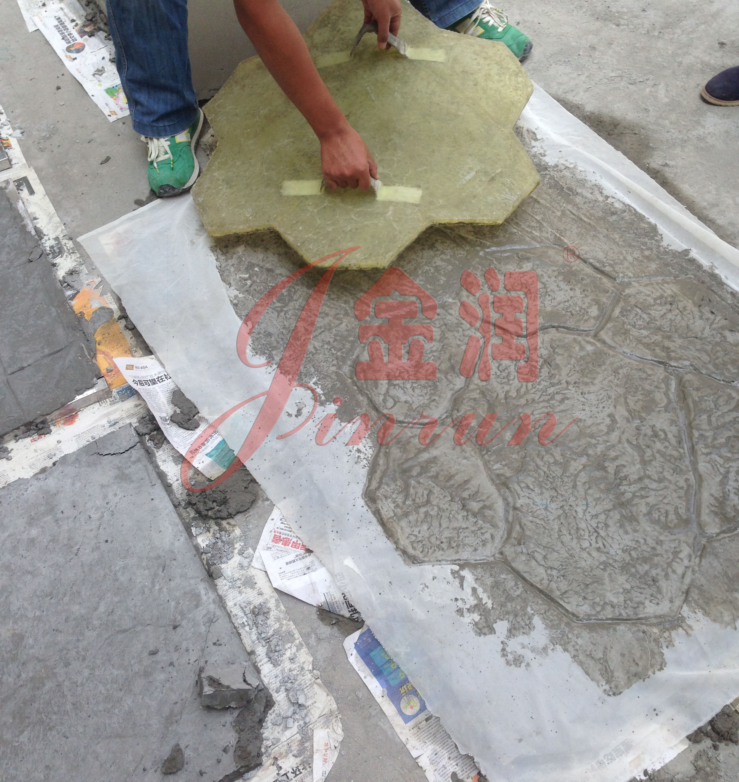 針對這種情況,金潤公司自主研發的酸著色產品,可以完美的解決這個問題,酸著色劑能和混凝土發生反應生成不同的也是,同時不同種的顏色可以搭配使用產生不同的仿古效果,美觀大方,顏色自然,耐紫外線好,永不褪色。同時施工簡單,工期也相對較短,幫您省工省料,無毒無味,可放心使用。