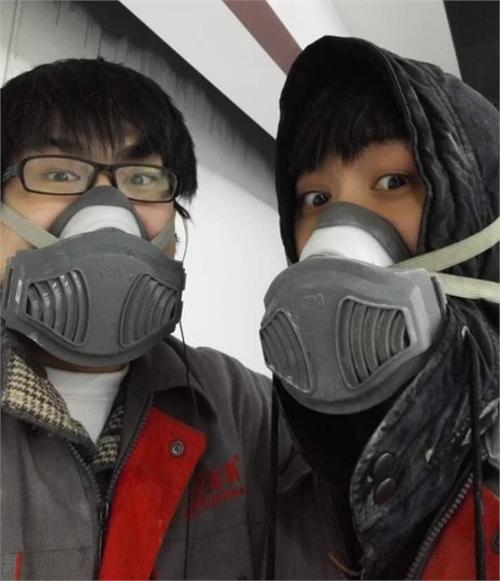 大家白天清理場地,打磨,晚上加班上固化劑上著色劑,張總也是奮戰(zhàn)在第一線。